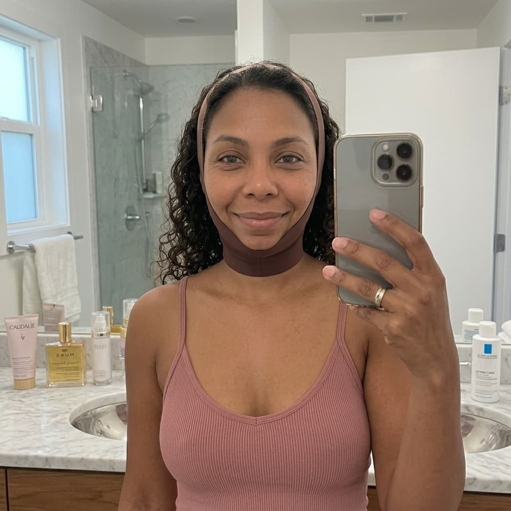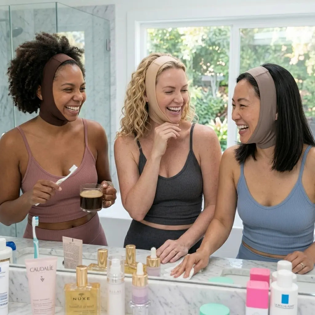Le remodelage est en cours. Vos joues, votre mâchoire, votre menton — tout se redéfinit. Les résultats ne disparaissent plus entre deux utilisations. C'est là que vous remettez à aimer les photos de vous.